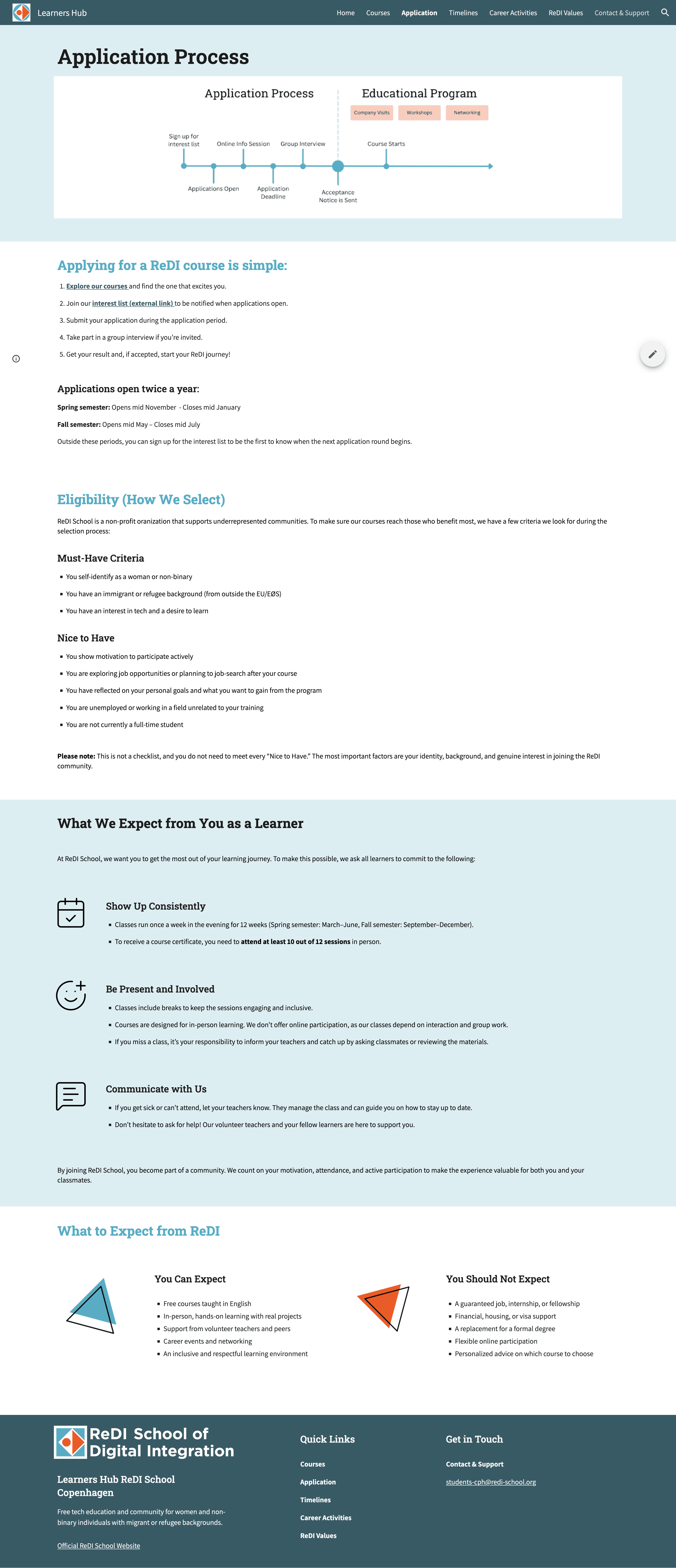 Designed a learner-journey–based structure to support new/prospect students and ReDI staff.